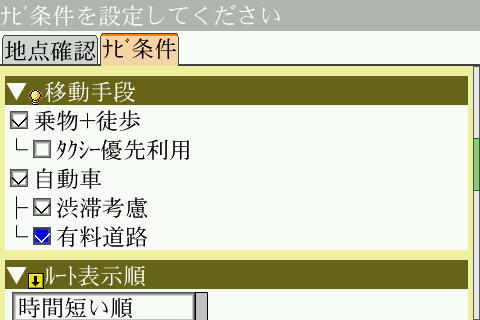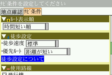 細かな検索条件も設定でき、さすがNAVITIMEという感じですね。