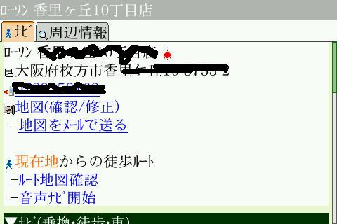 周辺2キロの検索結果が表示されます。該当するものが無ければ5キロまで広げて検索するかどうか聞いてきます。ちなみにこんなのは見つからないようです。それでは腹も減ったのでそのコンビニへ行ってみたいと思います。目的地の天気も表示されてますよ。