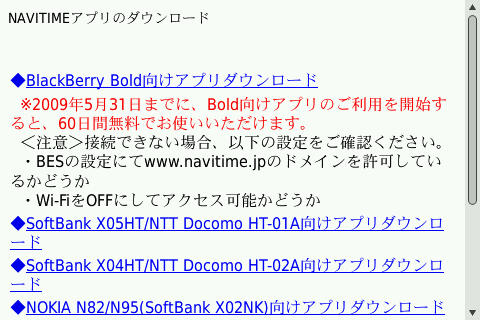 ご存知NAVITIMEをBlackBerry Boldで使ってみました。TVCMも良く見かけますしメジャーなアプリケーションになりましたね。最近はGoogle Mapばかりでしたが、国産ならではの心配り、情報量などを考えると315円は高くないですよね。