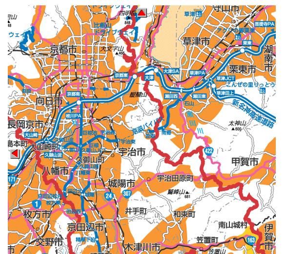 SMBだけマップの縮尺がこーんな感じです。これじゃー、よくわかりません。白と茶色の境界あたりに住んでる人はどうするんでしょ?店頭窓口には詳細地図が配布されてるのかね?