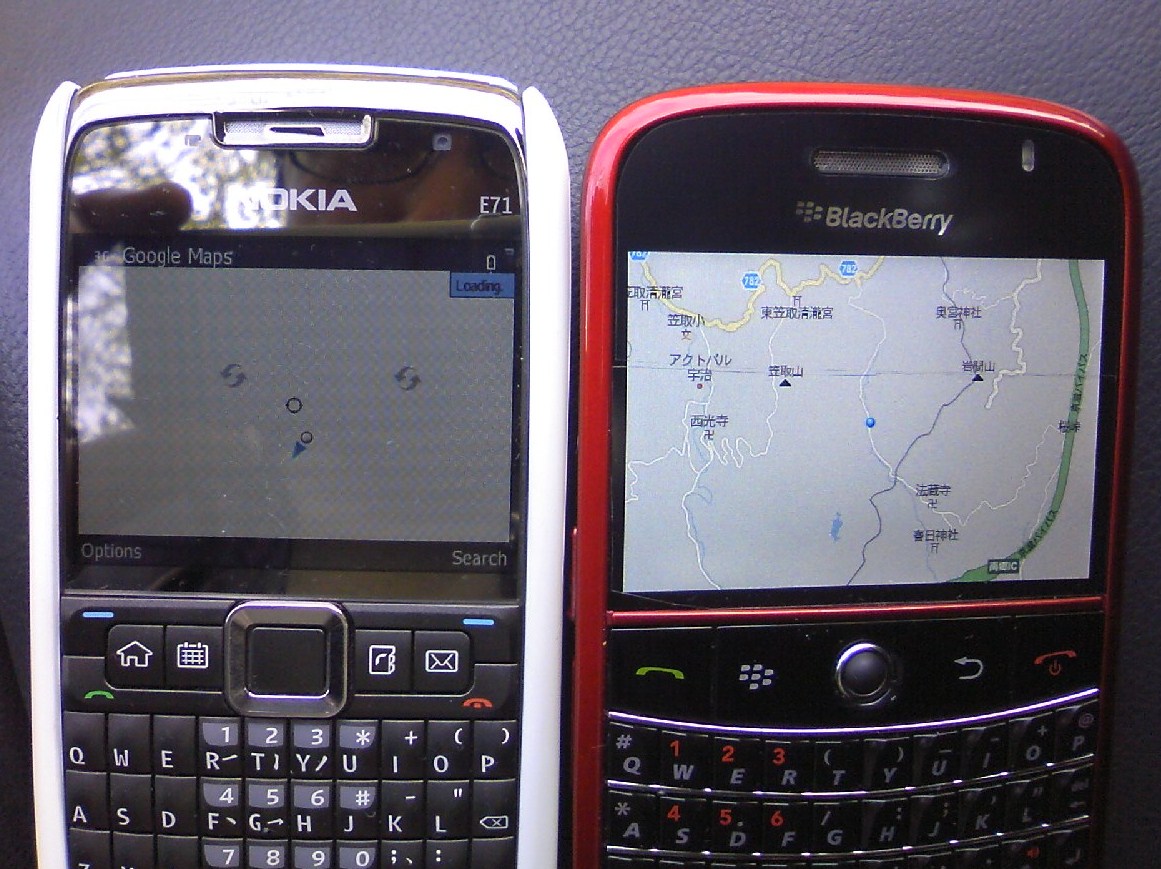 たまたま止まった場所でテストしたので不公平かもしれませんが、E71+SBM、Bold+Docomo、auのEZNaviの三通り、イーモバは…パスです。結果はE71は×、Boldは○、auはアンテナは1本立ってましたが×でした。