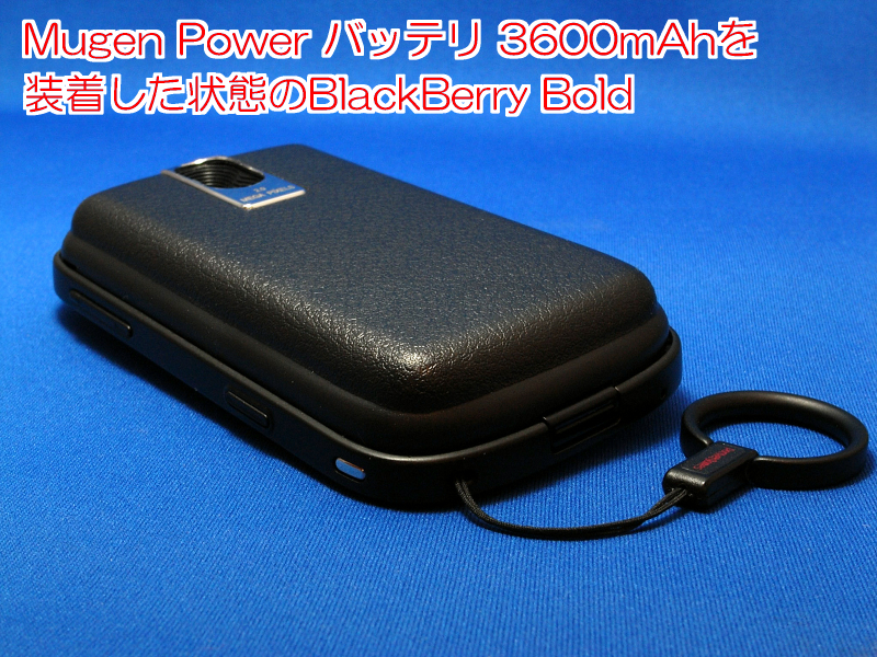 BlackBerry BoldにMugen Power バッテリ 3600mAh BlackBerry Boldを取り付けると、ノーマルな状態よりも約5mm厚みが増します。この大容量バッテリを取り付けた状態で収納可能なケースについてお問い合わせがありましたので、サイド部分にゴムベルトを採用している2つのケースを紹介します。