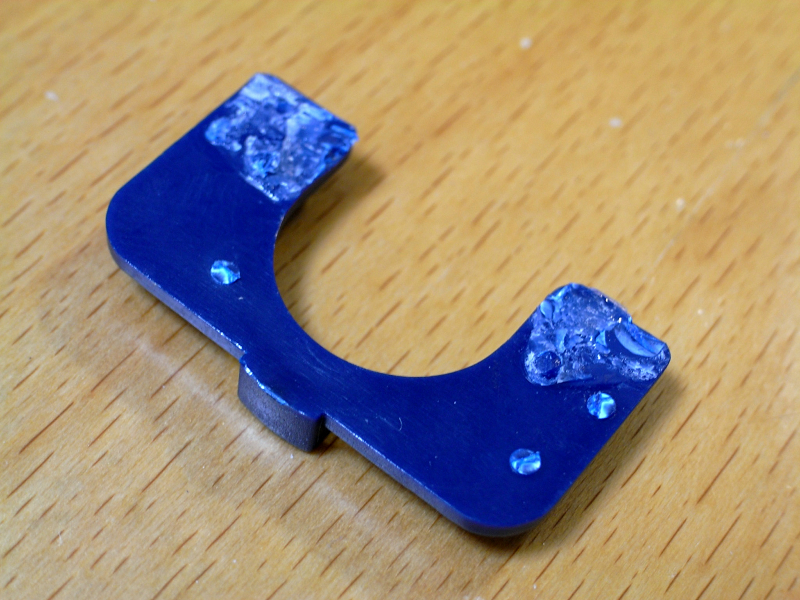 材料として使用したのは、Mugen Power バッテリ のバッテリカバー と テレスコープ のレンズと土台パーツ。まずはテレスコープレンズの土台部分を元のパーツから分離して裏側をヤスリで平らにします。