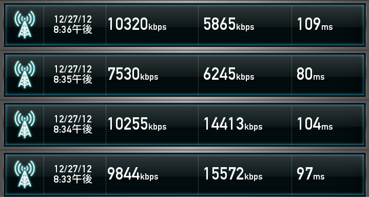 いつもの1号線沿いのラーメン屋での結果。docomoがこちら。下り平均4.7M。ラーメンは食ってませんし。