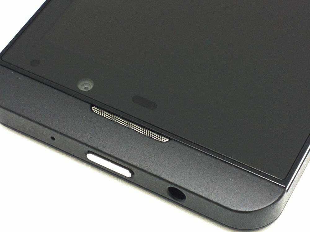 上にはパワーボタン、イヤホンジャック、セカンドマイクと思われる穴。カメラ、スピーカー、各種センサーとLEDでしょうか。