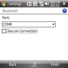 適当なCOMポートを割り当て、「Secure Connection」のチェックを外し、終了。