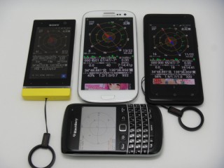 BlackBerry Bold 9790にはGPS Toolをインストール、あとのHTC JとGalaxy S IIIとXperia UにはGPS Statusをインストールしています。