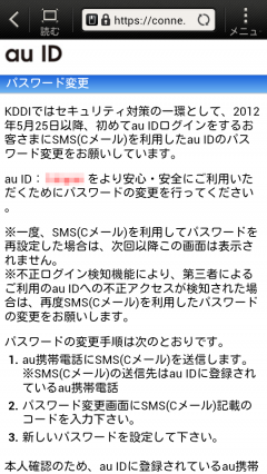 1)ほぼ使ったことがないau oneメールをHTC Jで使おうととしたら、パスワードを再設定しなさいと表示。