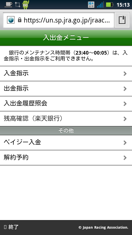 JRAのカードとかは持ってませんので、一旦JRAへ入金します。投資金額は秘密です。