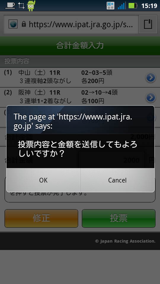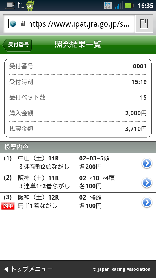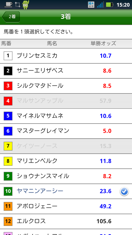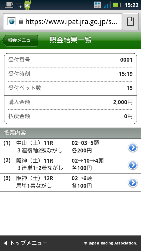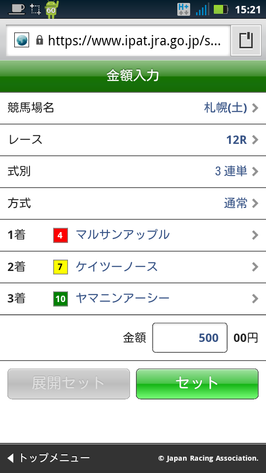 そんな訳で、仕方なく馬券を買ってみました。この際、勝敗はどうでも良いのです(涙)、スマートフォン対応サイトを使ってみるのが重要なんです(涙)