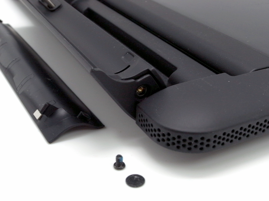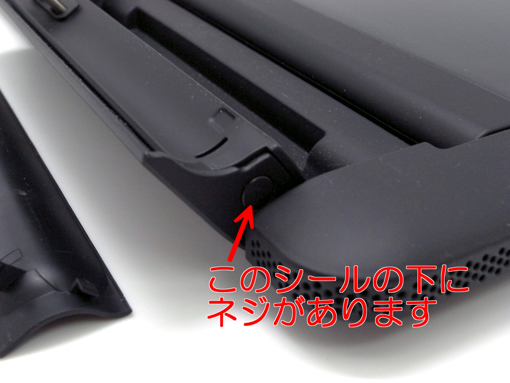 続いて、ドッキング部分の脇にあるシールと、その下にあるネジを外します。