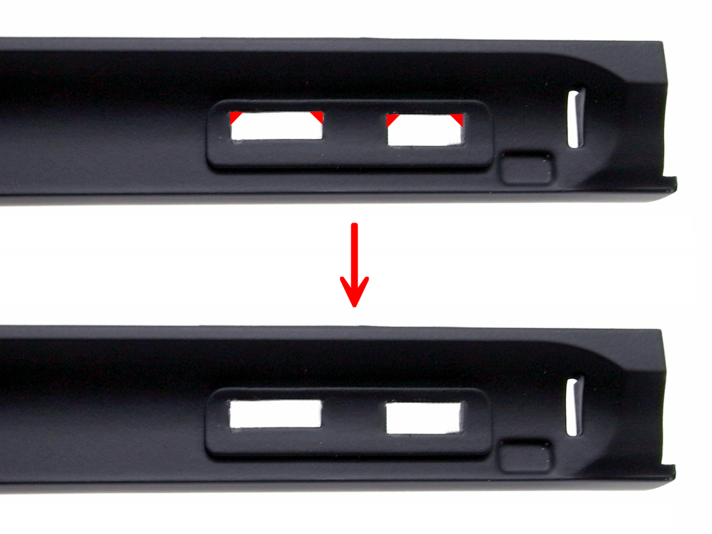 端子穴の形状を逆にしても刺さるように少し削ります。柔らかい素材なのでカッターでも削れました。