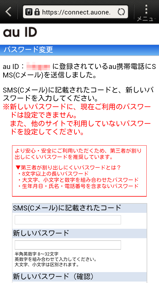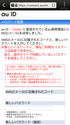 3)SMSで届いたコードと新しいパスワードを入力するらしい。