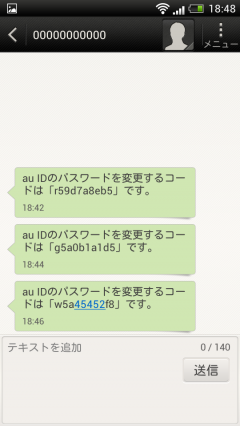 1)ほぼ使ったことがないau oneメールをHTC Jで使おうととしたら、パスワードを再設定しなさいと表示。