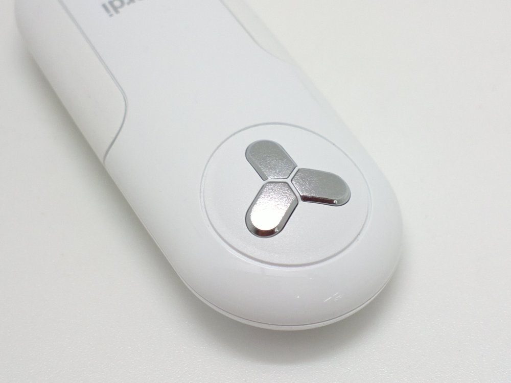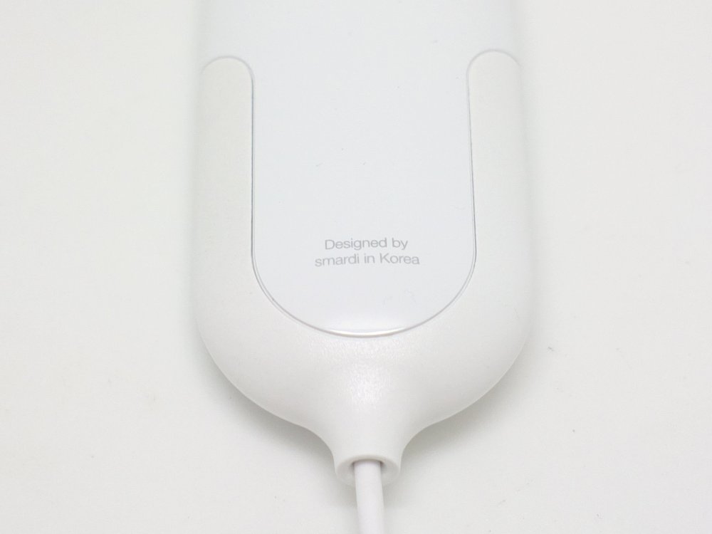 先日ご紹介したA-SCANと同じく、白ボディーでまるっこい、綺麗なボディーです。3個の金属パーツが埋め込んであり、これで水分量を計測します。A-SCANはたったの14gでしたが、こちらは13gと中身は入ってるの?と思うぐらい軽量です。