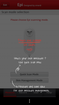 測定はQuick Scan ModeとSkin Management Modeの2種類があります。Quick Scan Modeはさくっと測定のみ。Skin Management Modeだと、顔の4箇所のうち、どれかを3回づつ計測し、データを保存できます。