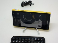 悔しいので、私の巨大なおもちゃ箱(サンプルを保管しているダンボール箱)から探してきたのがBluetooth keyboardです。これでシャッターを切る方法を紹介しますね。別にキーボードじゃなくてもヘッドセットで良いのですが、そこは、やっぱネタ的に面白くないですから。