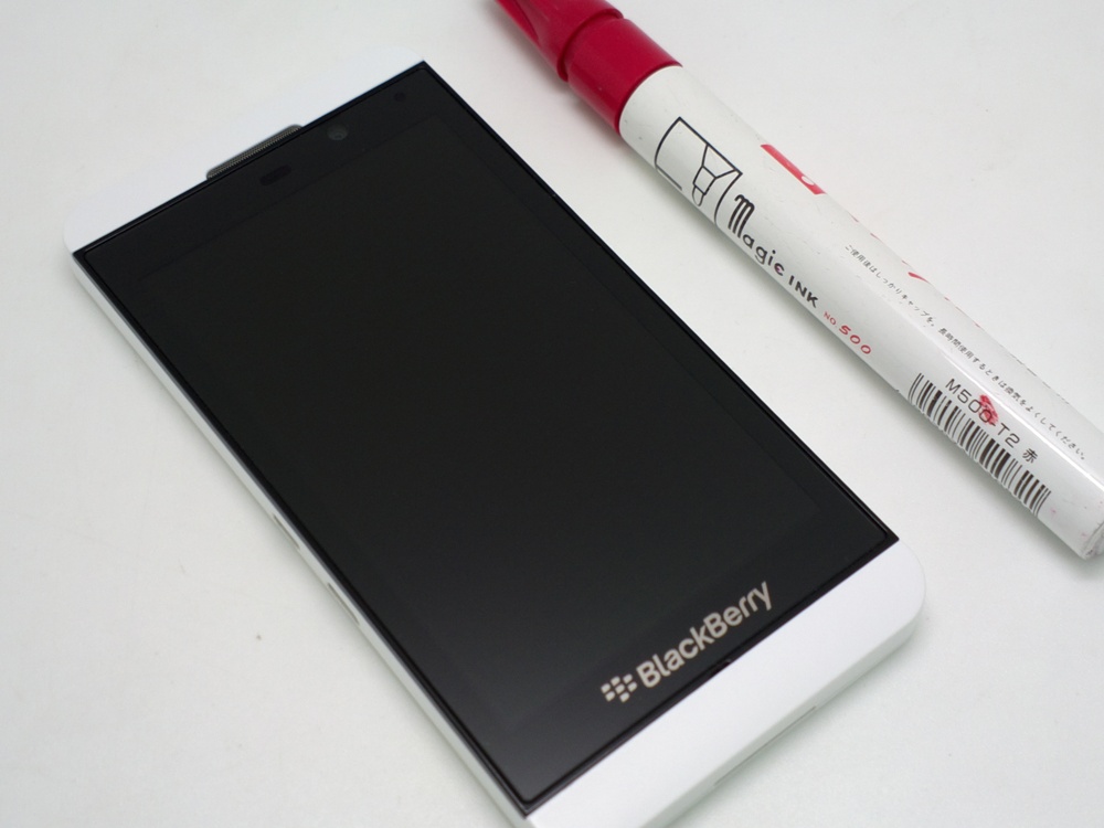保護シートの貼ってないBBと貼ったBBに水を2滴づつ落としてみます。面白かったのでZ10には2滴x2箇所に落としてしまいました。