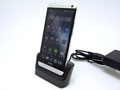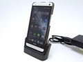 HTC One 用 充電クレードル。アタッチメントを外すと、薄手のケースを付けたままでも HTC One をセット可能!