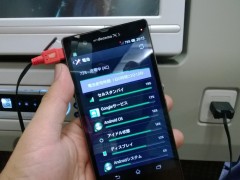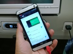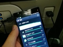 よーく見ると、「充電中(USB)」と表示されていますよね。メーカーによって異なりますが、500mA程度でゆっくり充電している状態なんです。短いフライトでゆっくり充電されたら困っちゃいますし。