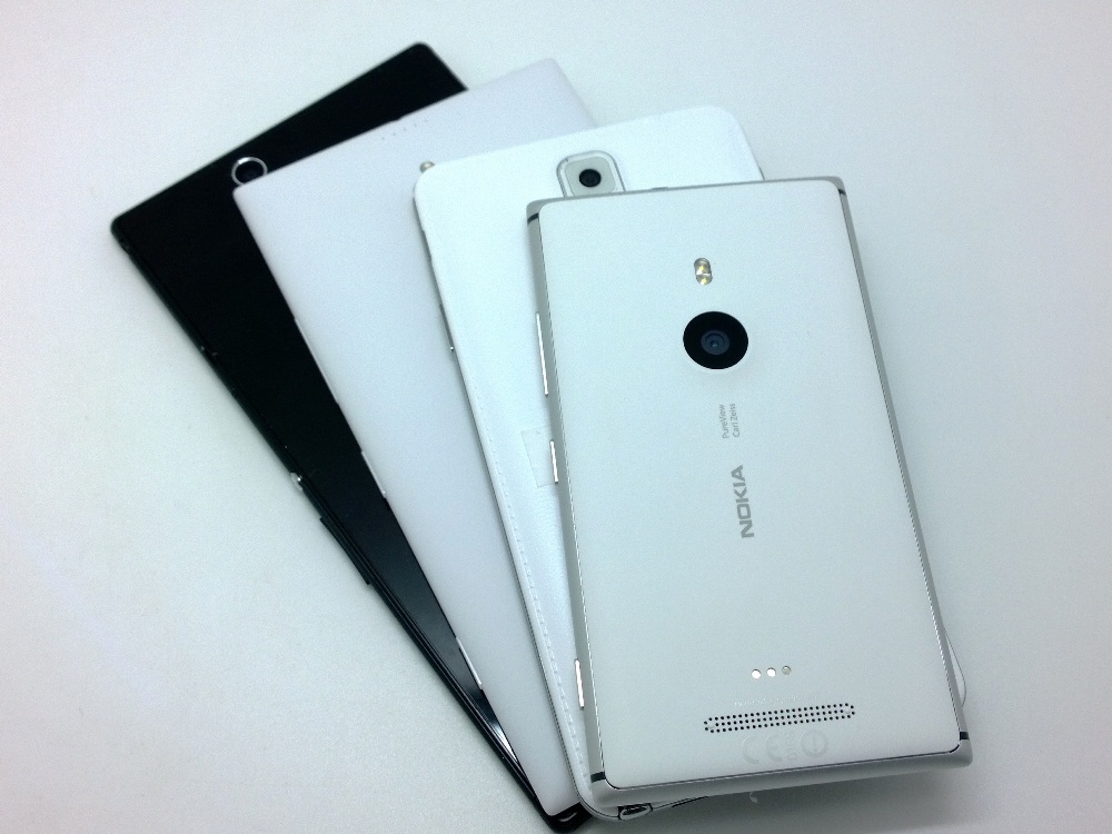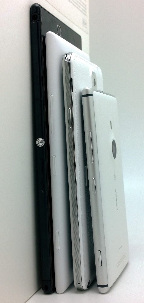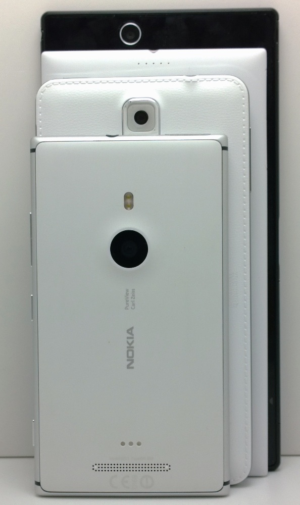 高さ比較です。 Ultra、Lumia 1520、Galaxy Note3、Lumia 925の順。