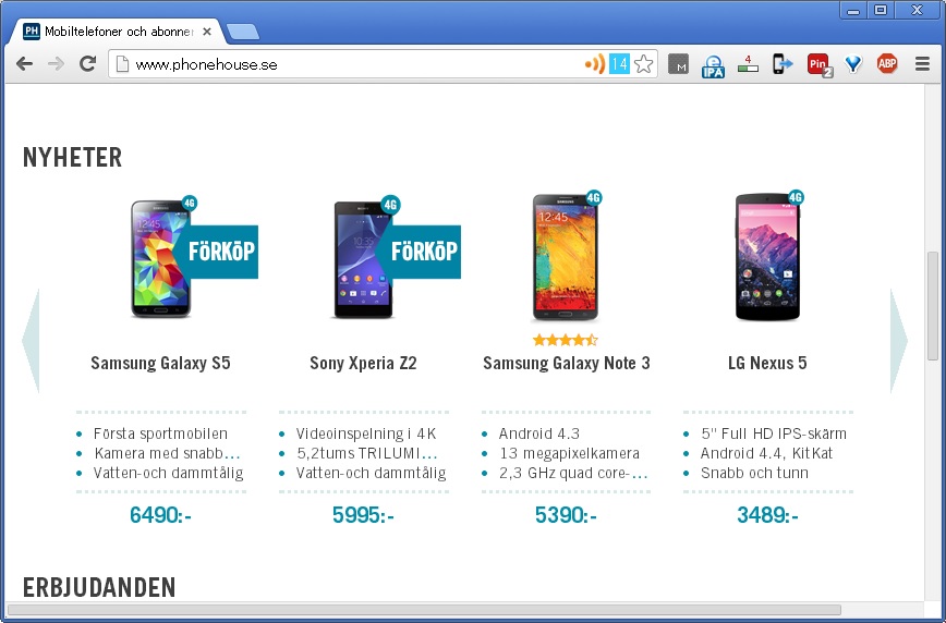 スウェーデンのphonehouseからDMが来ていました。Galaxy S5とXperia Z2の価格がもう出ているのですね。