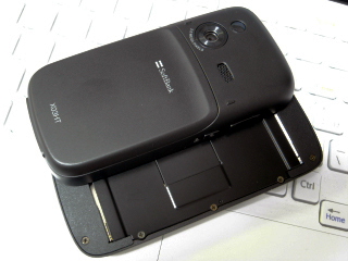 裏面には200万ピクセルカメラとスピーカー。液晶はX02HTと同じ大きさですね。正確には液晶は同じでも枠がある分X02HTの方がフラット面が少し広いですね。液晶保護シートは、それぞれ専用のものを購入してください。