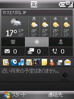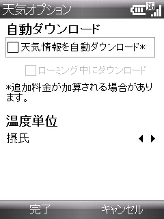 HTCホームの機能として、天気情報も表示できる。天気を知りたい都市を選択して、情報はネット経由でダウンロードする。