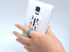 デバイスの背面に貼るだけで、手に持って操作する際の補助になるフィンガーグリップ。スタンド機能付き。カーホルダーパーツ付属。