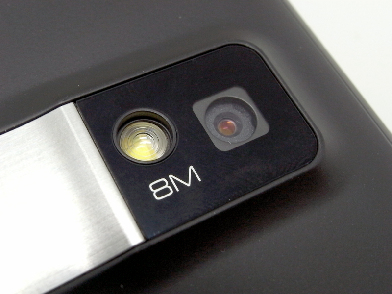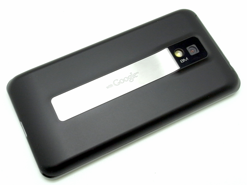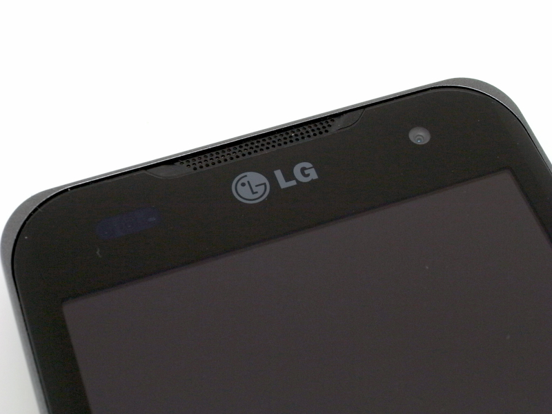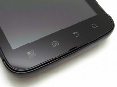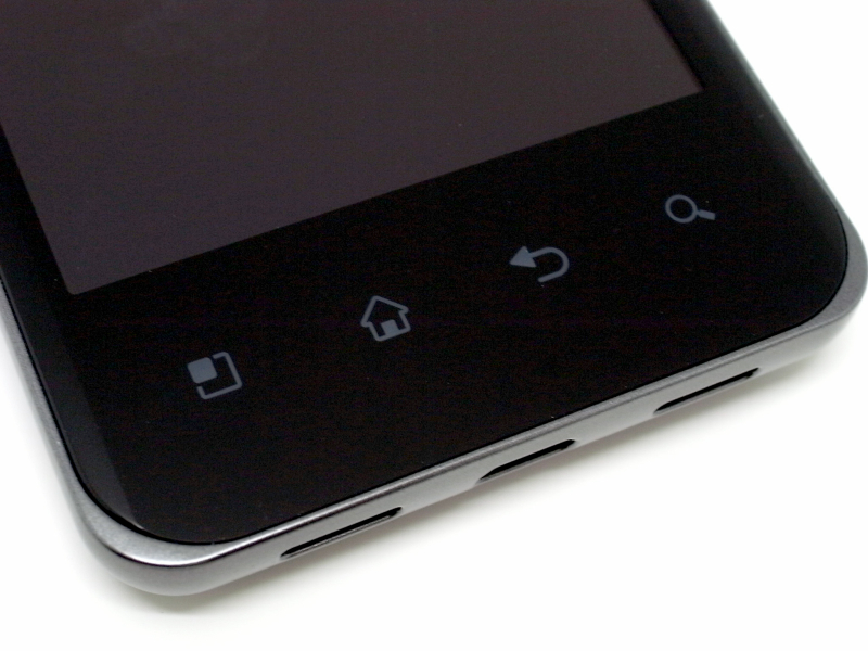 正面上には、真ん中に受話口、受話口の左にサブカメラ、右にセンサー類。正面下には、タッチ式の Menuボタン、Homeボタン、Backボタン、Searchボタン。ボタンの並びはOptimus 2Xと同じですね。