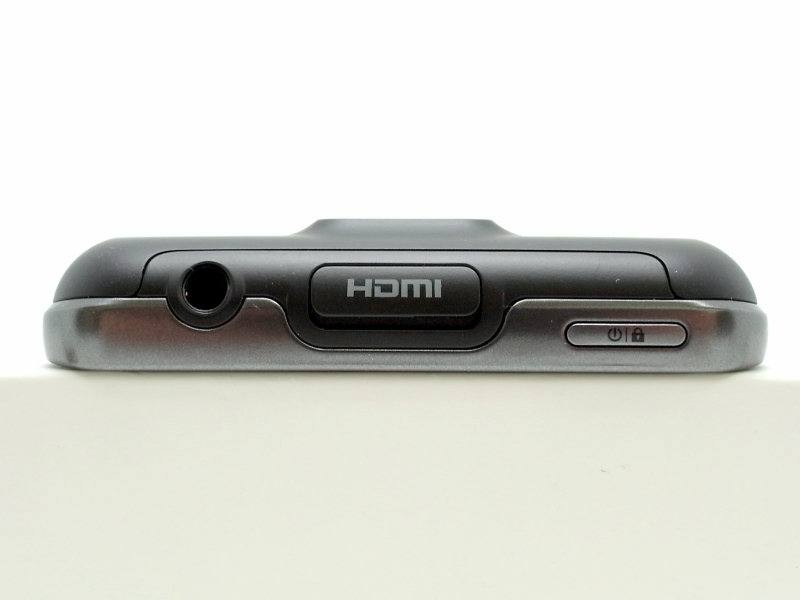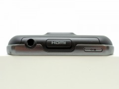 上側には、3.5mmイヤホンジャック、HDMI(type D)出力端子、電源ボタン。下側には、スピーカー2つ、microUSB端子。