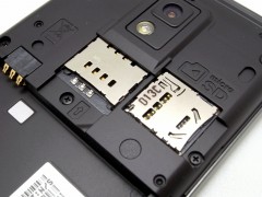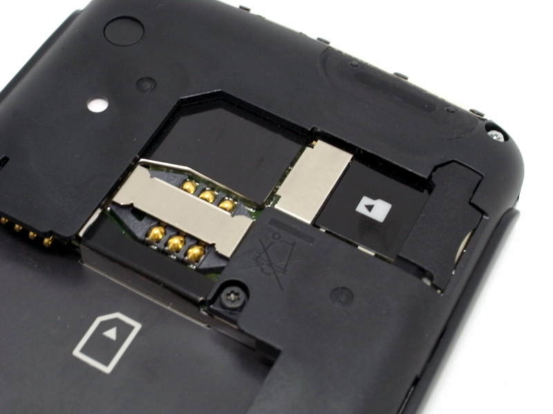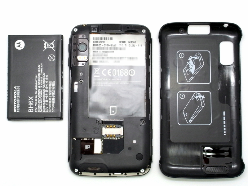 バッテリカバーは、バリバリと剥がすタイプだが、バリバリ度は小さく、主にカバーの上下部分で挟み込むタイプ?(自分の表現力の貧しさがツライ)。バッテリカバーを外すと、バッテリ、SIMカードスロット、microSDカードスロットがあります。SIMは、バッテリを外さないと抜き差しできない。