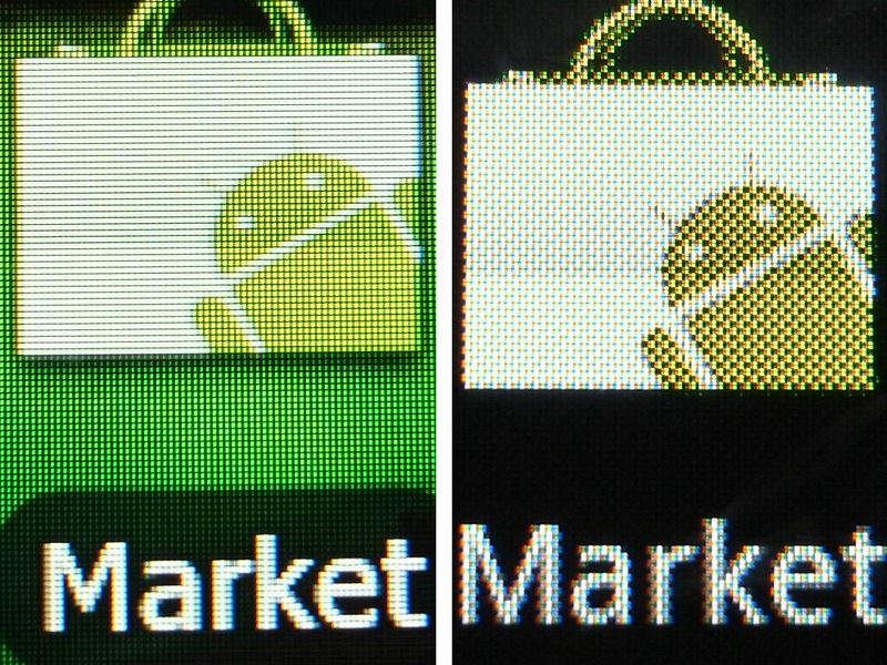Optimus 2X(左)とATRIX 4G(右)の画面アップ写真。